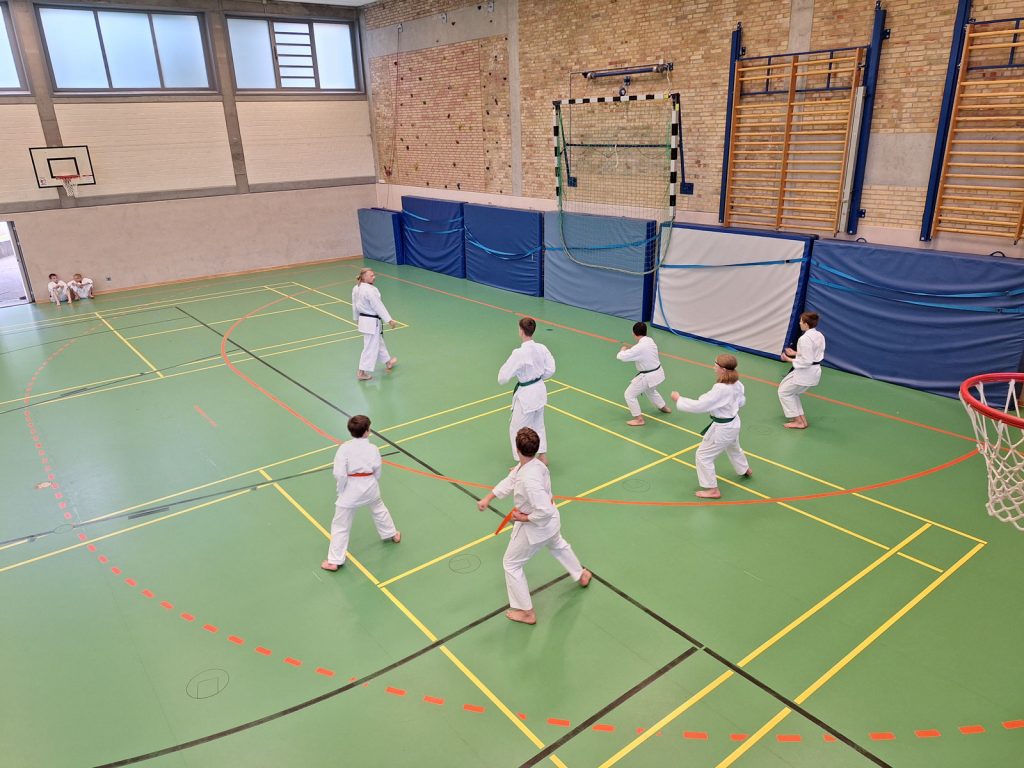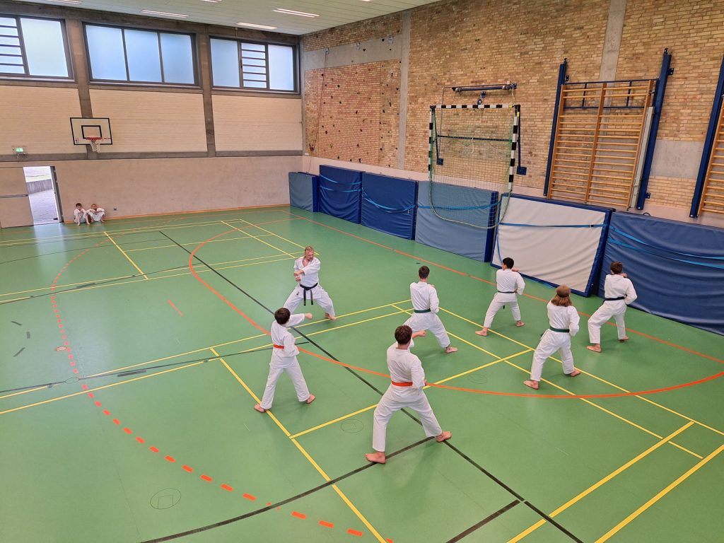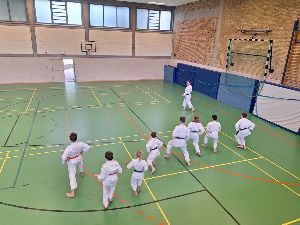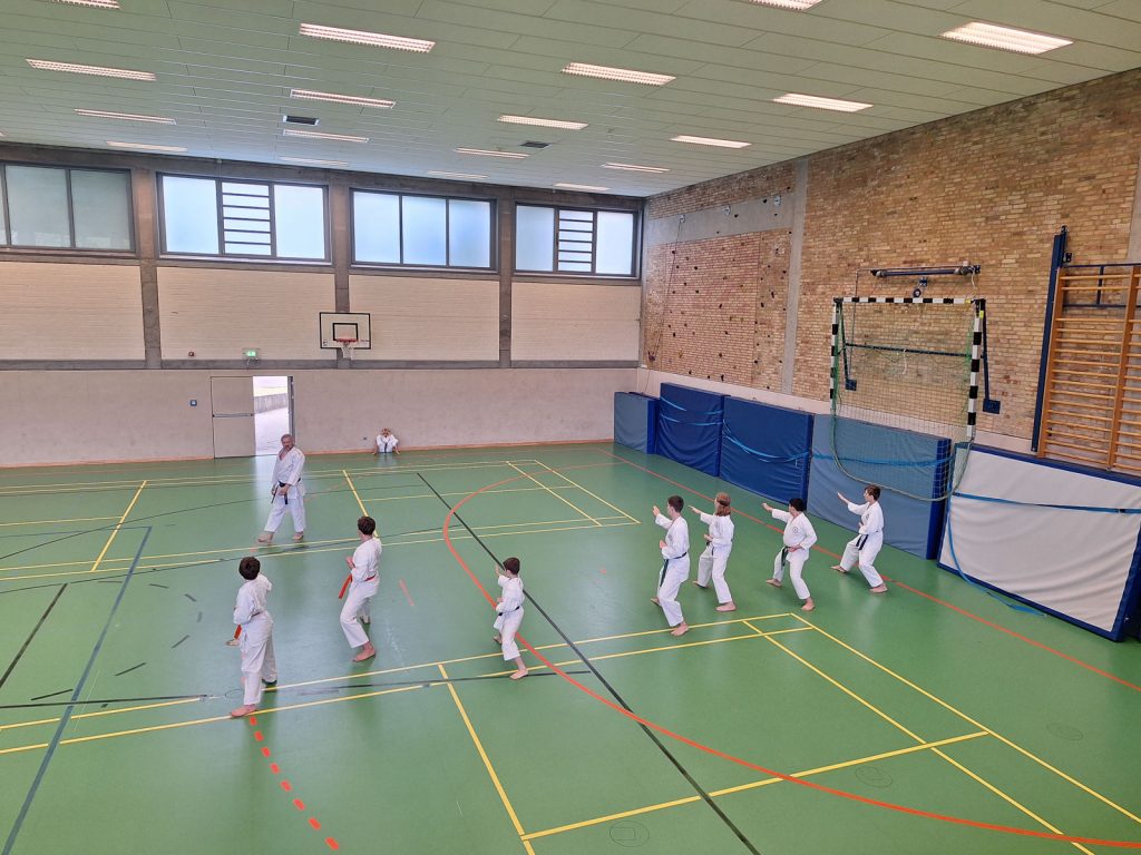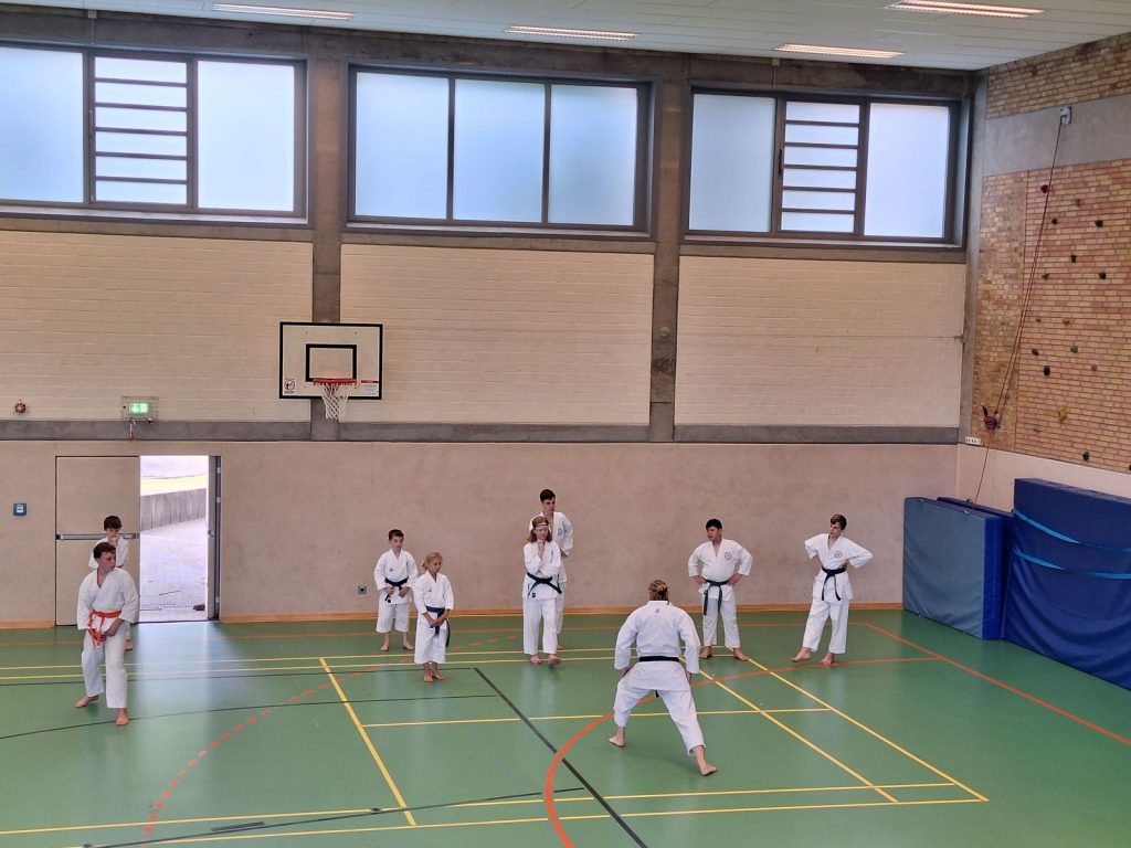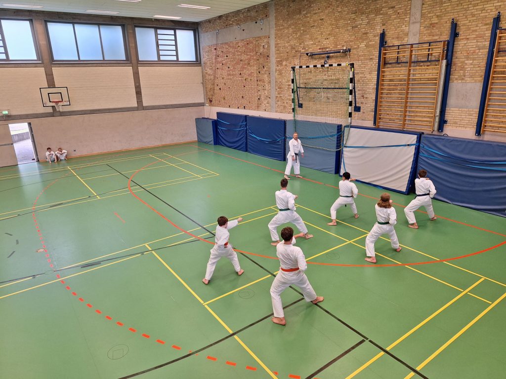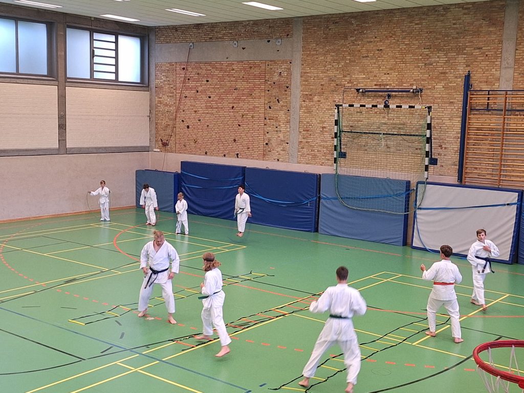 Danach wurden die Kinder und Jugendlichen in Gruppen entsprechend ihrer Graduierungen aufgeteilt. Jeweils eine Einheit war der Kata gewidmet, die andere dem Kumite. So konnten alle gezielt an ihren Fähigkeiten arbeiten.
