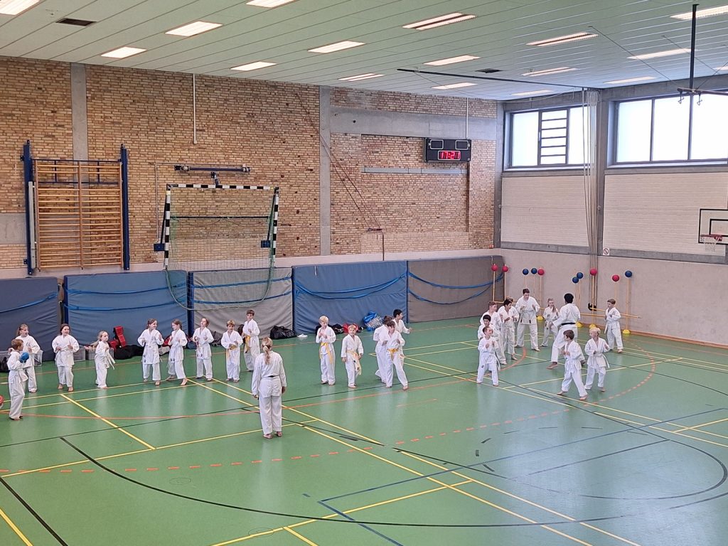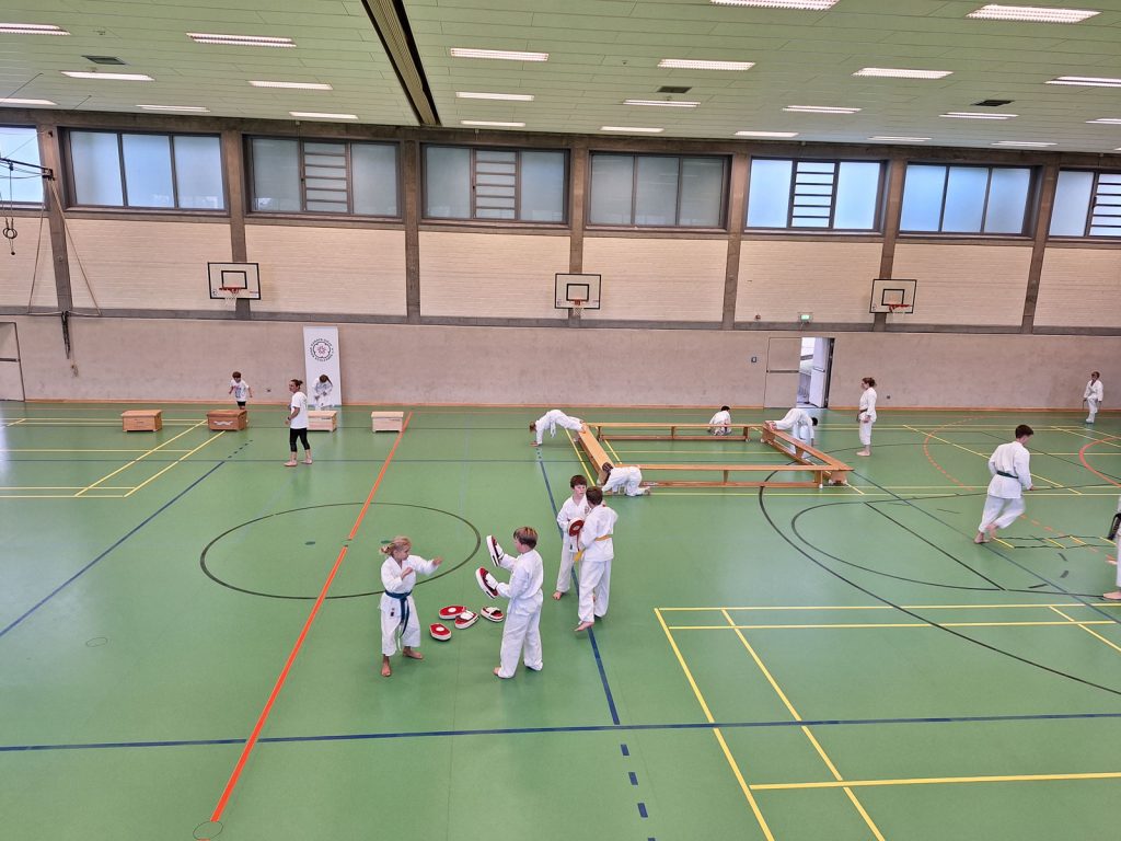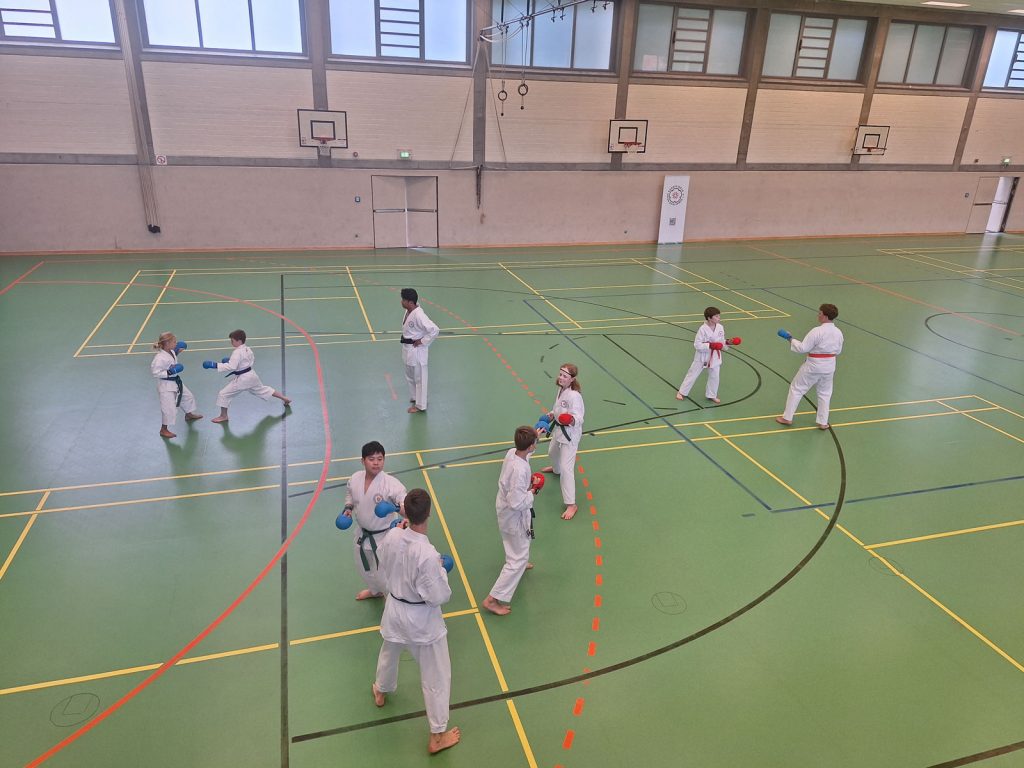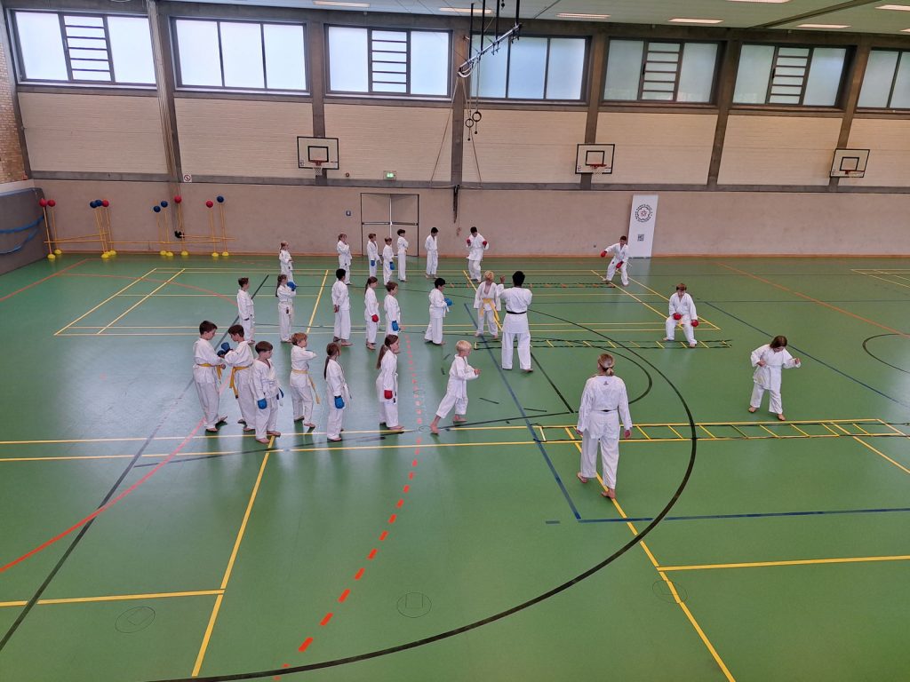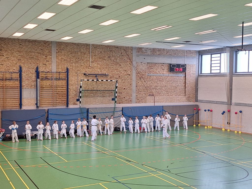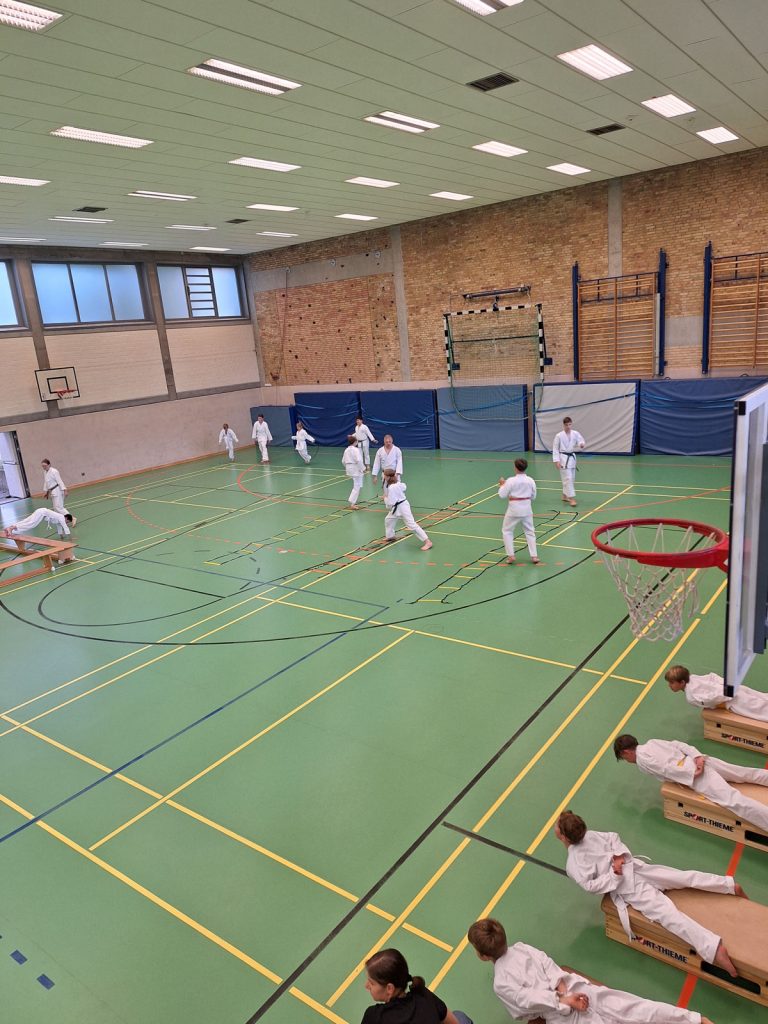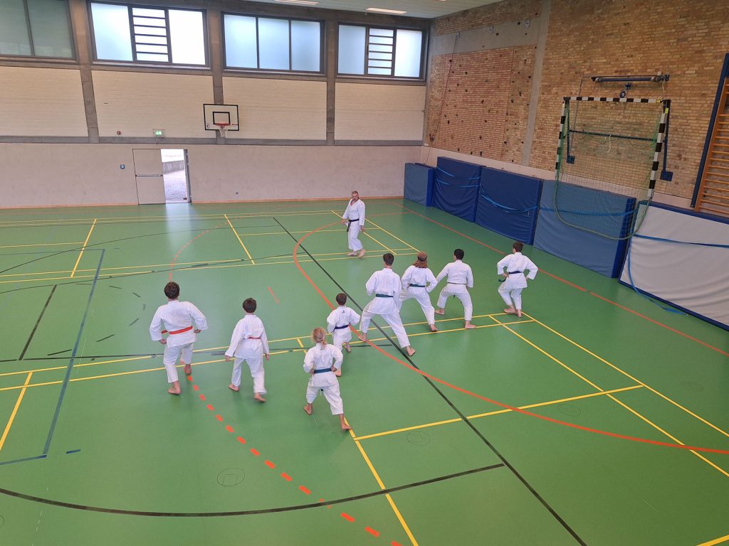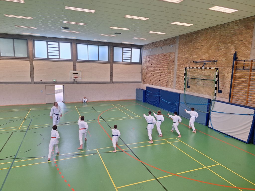 Danach wurden die Kinder und Jugendlichen in Gruppen entsprechend ihrer Graduierungen aufgeteilt. Jeweils eine Einheit war der Kata gewidmet, die andere dem Kumite. So konnten alle gezielt an ihren Fähigkeiten arbeiten.