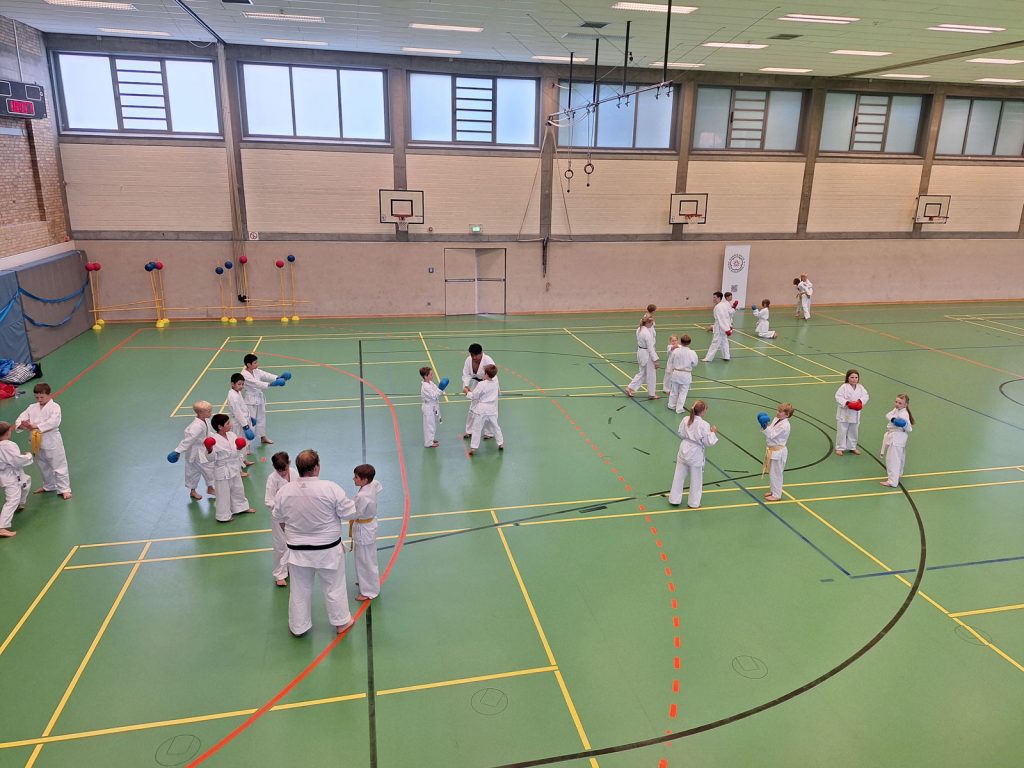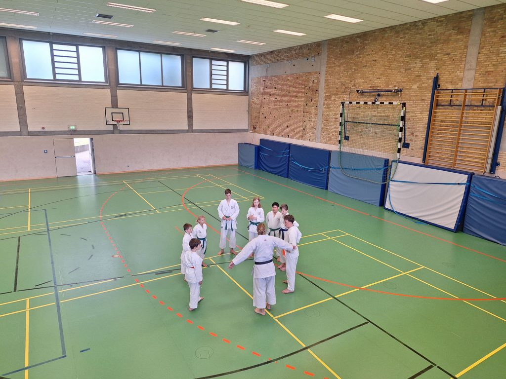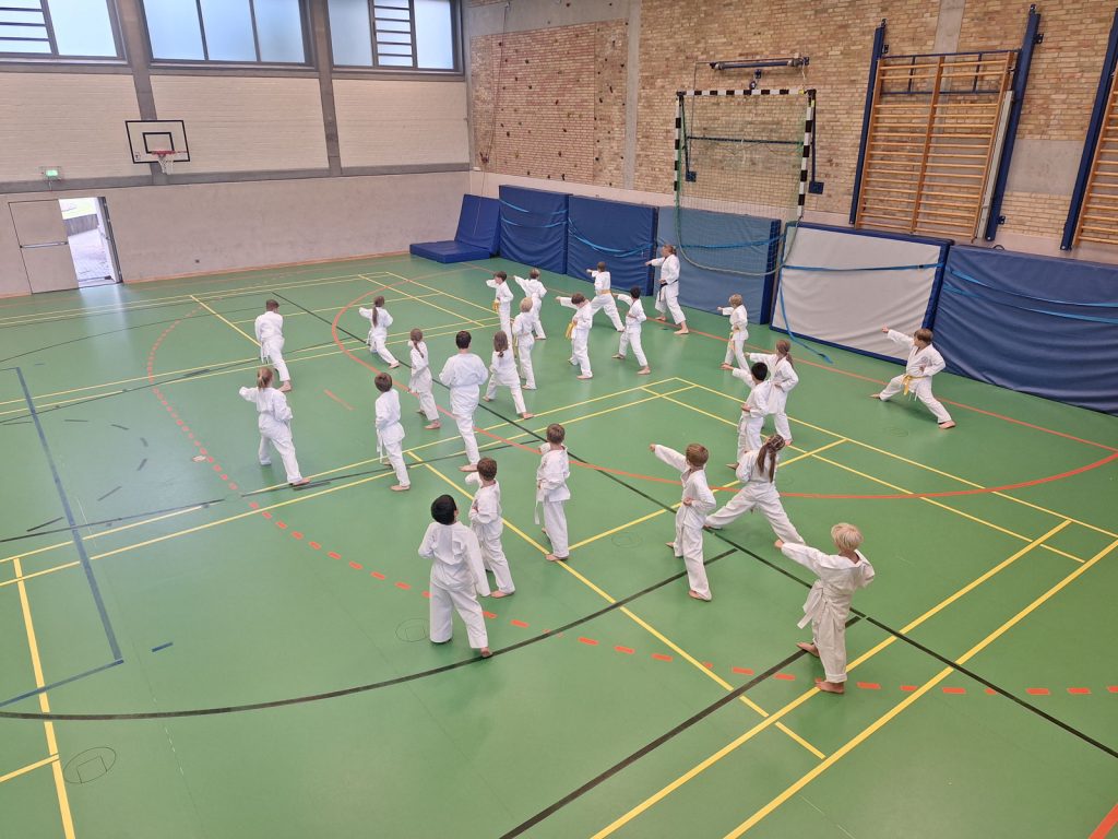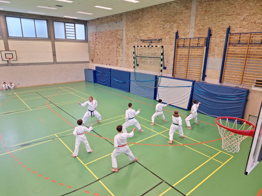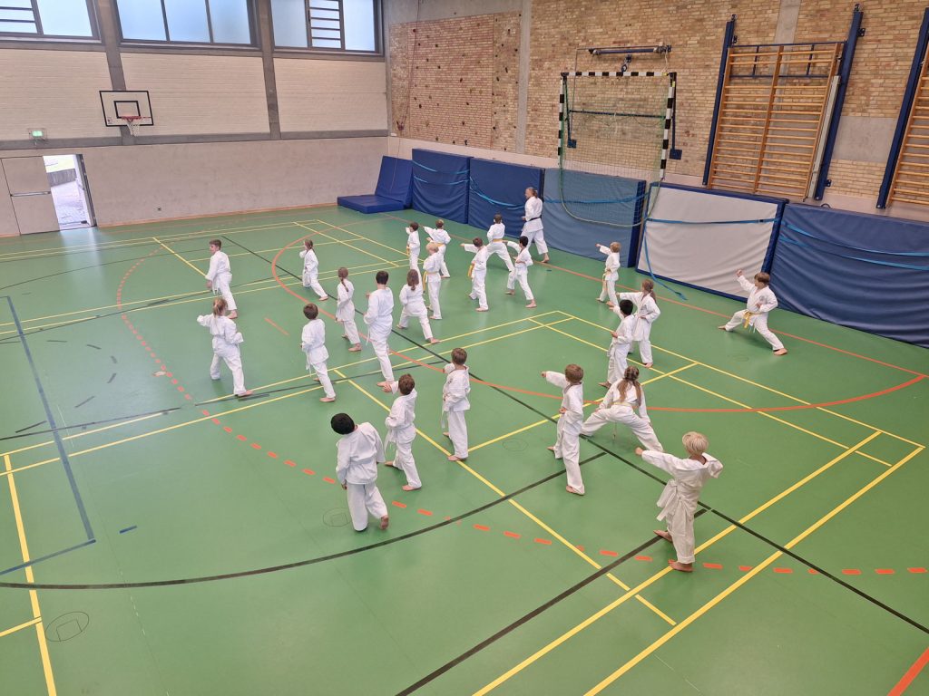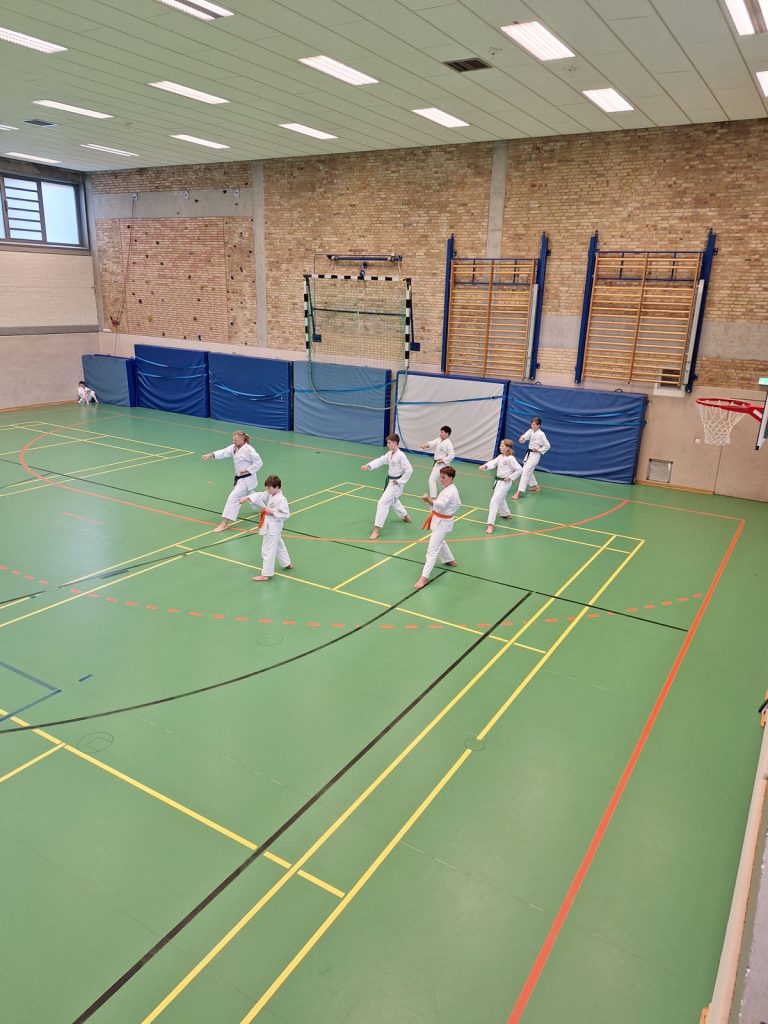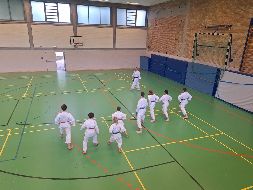 Danach wurden die Kinder und Jugendlichen in Gruppen entsprechend ihrer Graduierungen aufgeteilt. Jeweils eine Einheit war der Kata gewidmet, die andere dem Kumite. So konnten alle gezielt an ihren Fähigkeiten arbeiten.