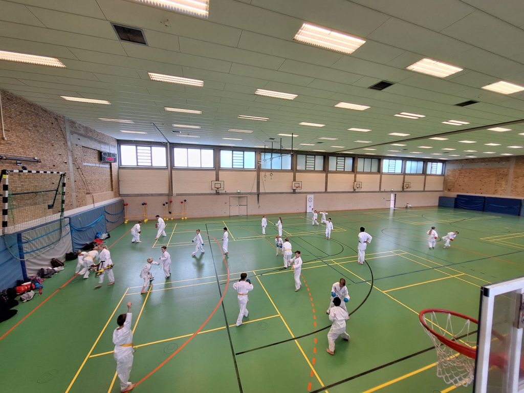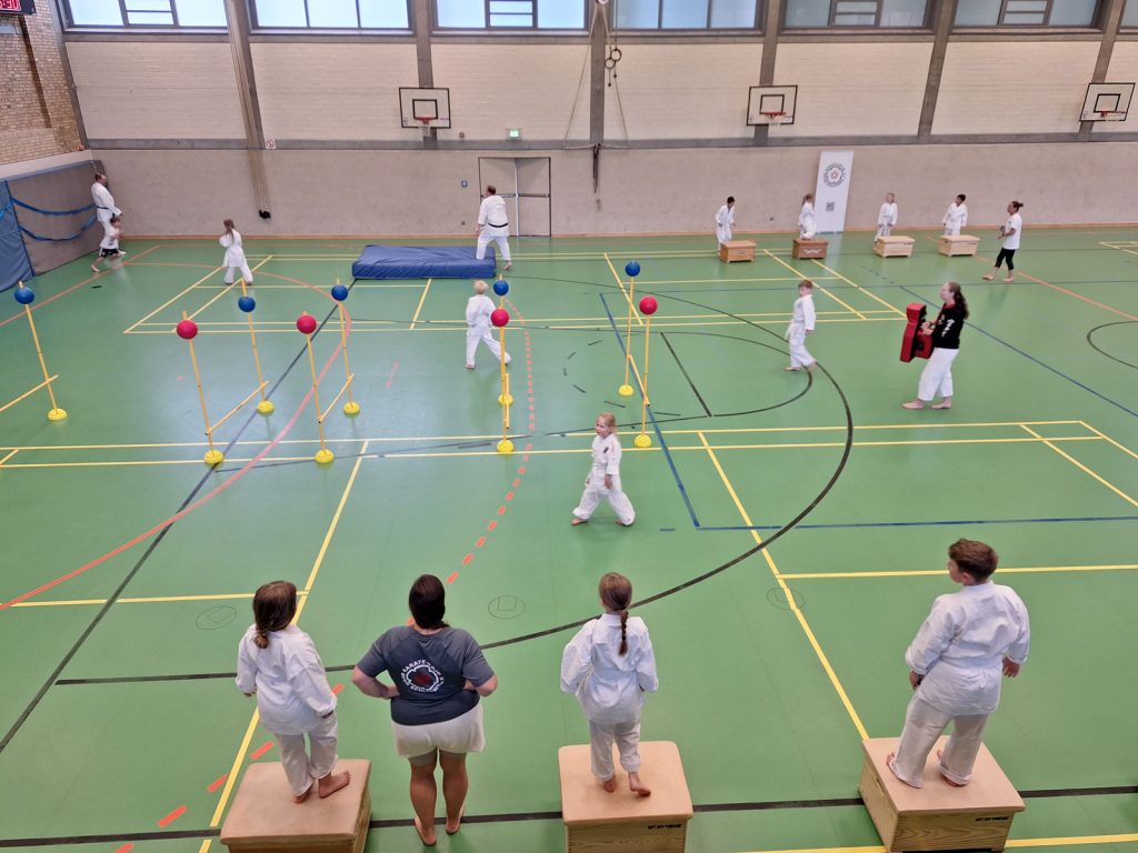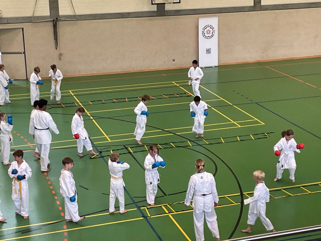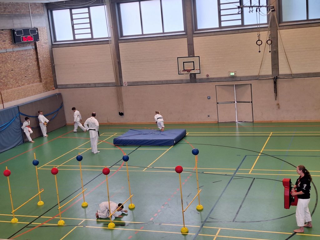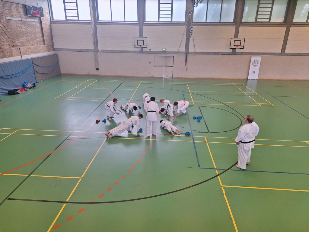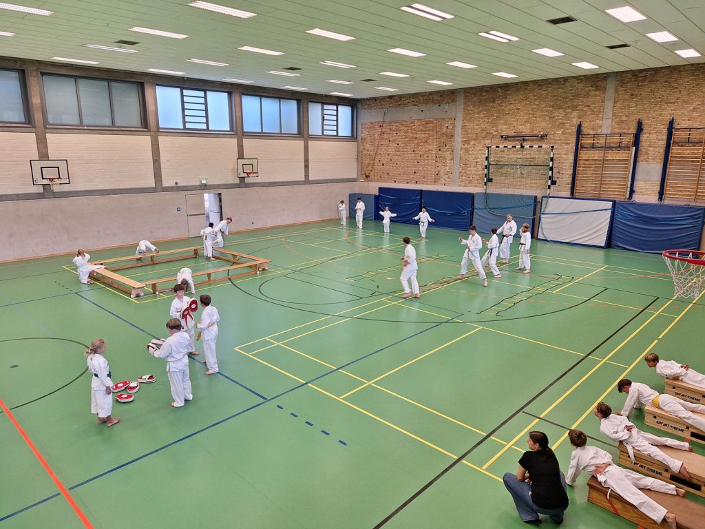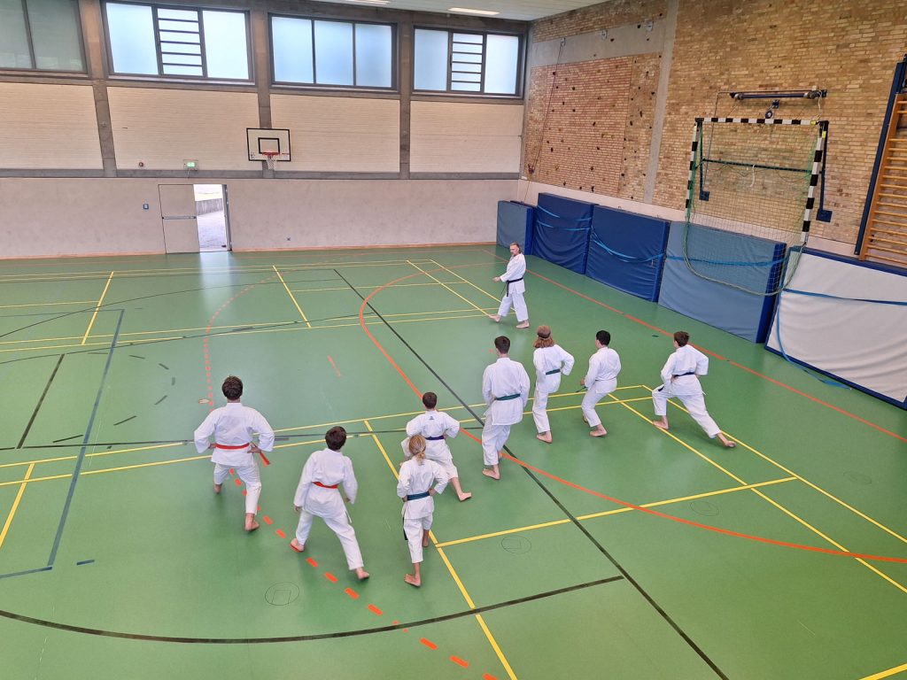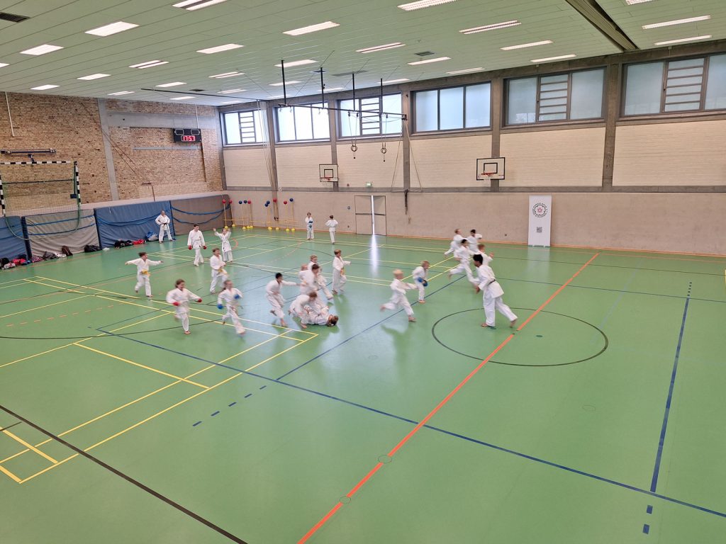 Danach wurden die Kinder und Jugendlichen in Gruppen entsprechend ihrer Graduierungen aufgeteilt. Jeweils eine Einheit war der Kata gewidmet, die andere dem Kumite. So konnten alle gezielt an ihren Fähigkeiten arbeiten.