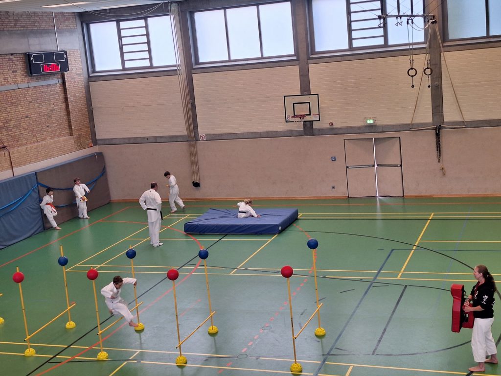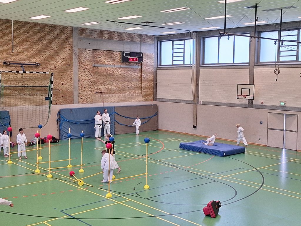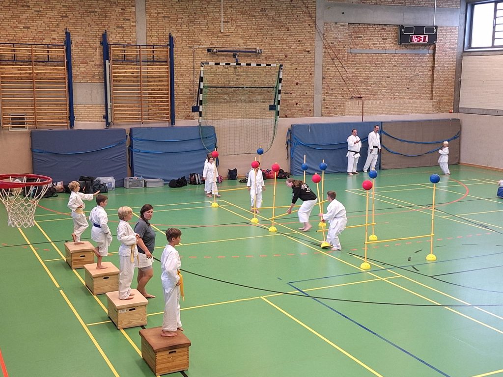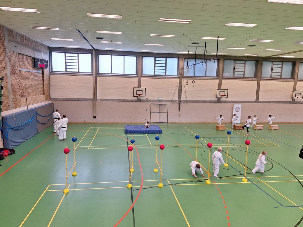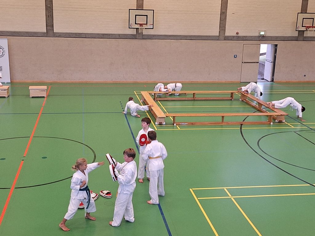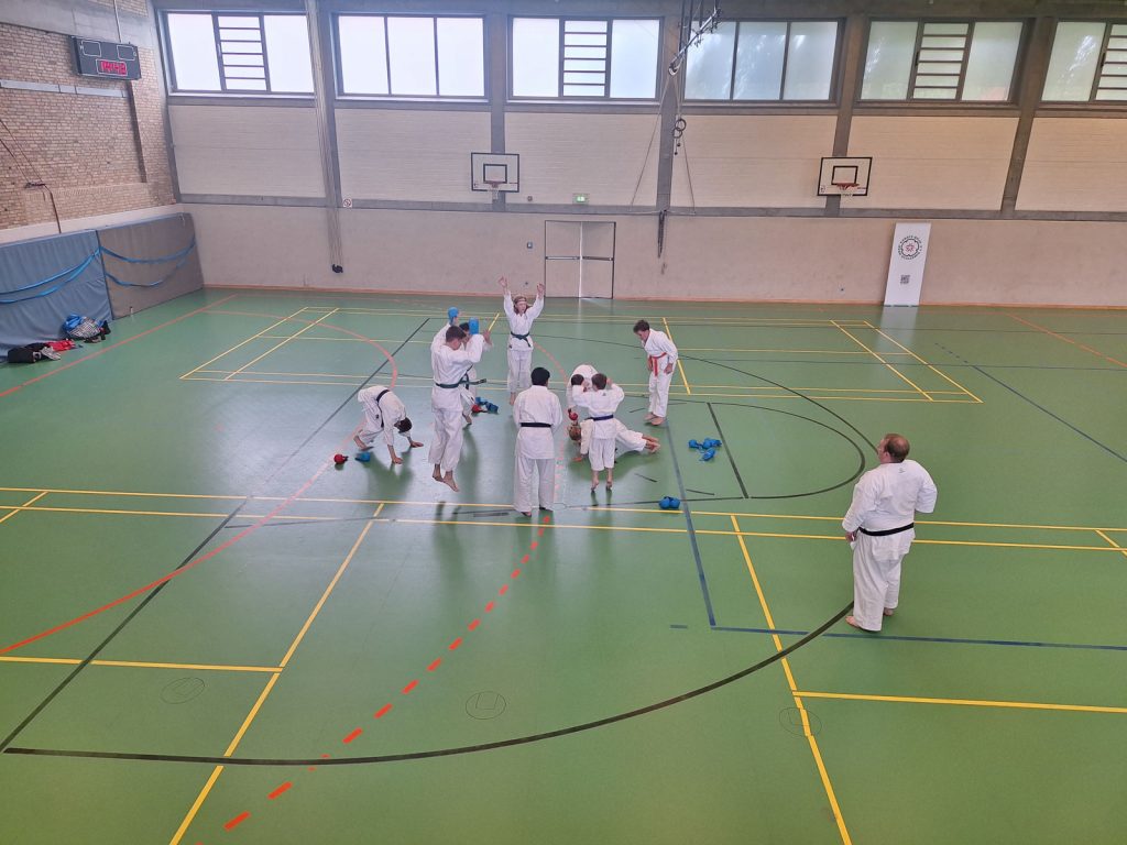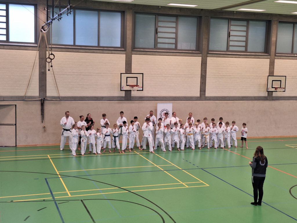 Danach wurden die Kinder und Jugendlichen in Gruppen entsprechend ihrer Graduierungen aufgeteilt. Jeweils eine Einheit war der Kata gewidmet, die andere dem Kumite. So konnten alle gezielt an ihren Fähigkeiten arbeiten.