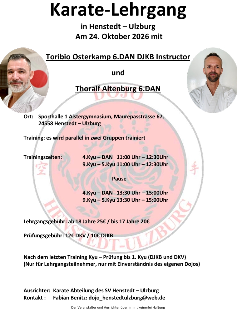 Karate Lehrgang in Henstedt-Ulzburg mit Toribio Osterkamp 6.DAN + Thoralf Altenburg 6.DAN