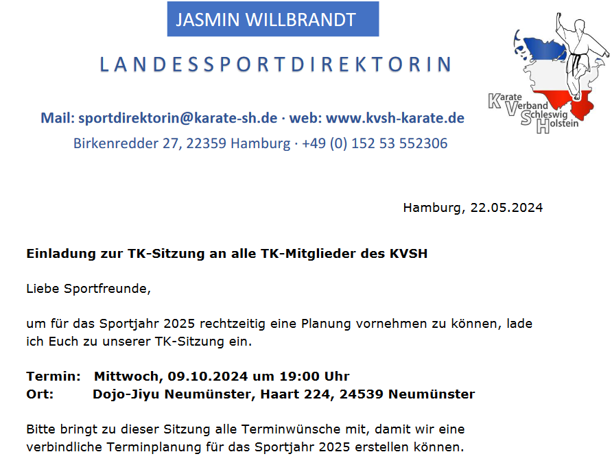 KVSH Einladung zur TK-Sitzung für alle TK-Mitglieder