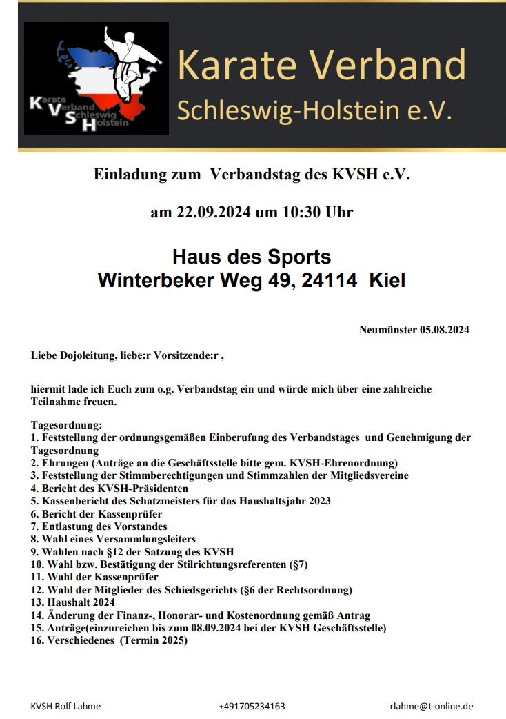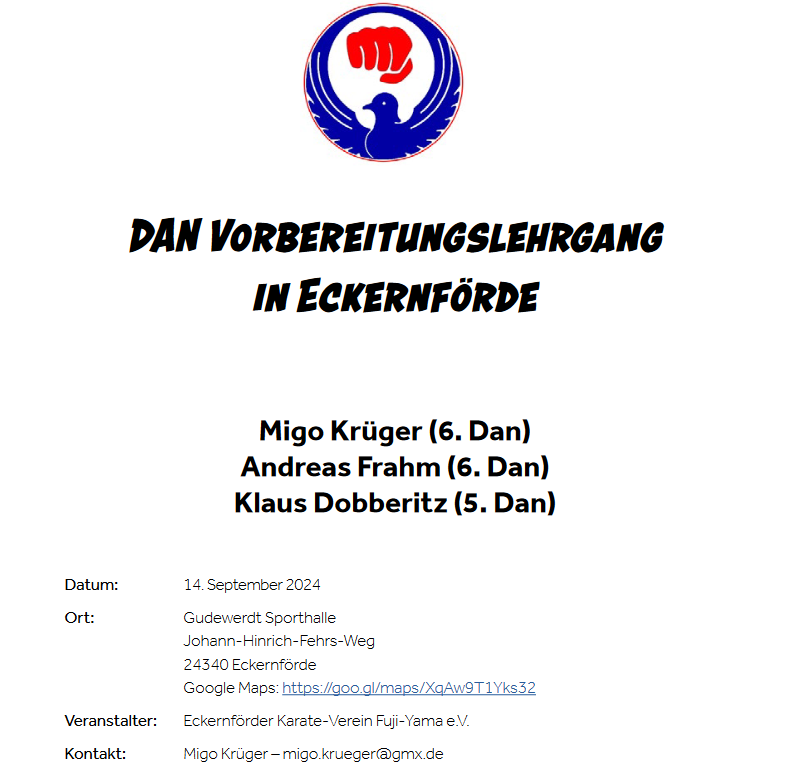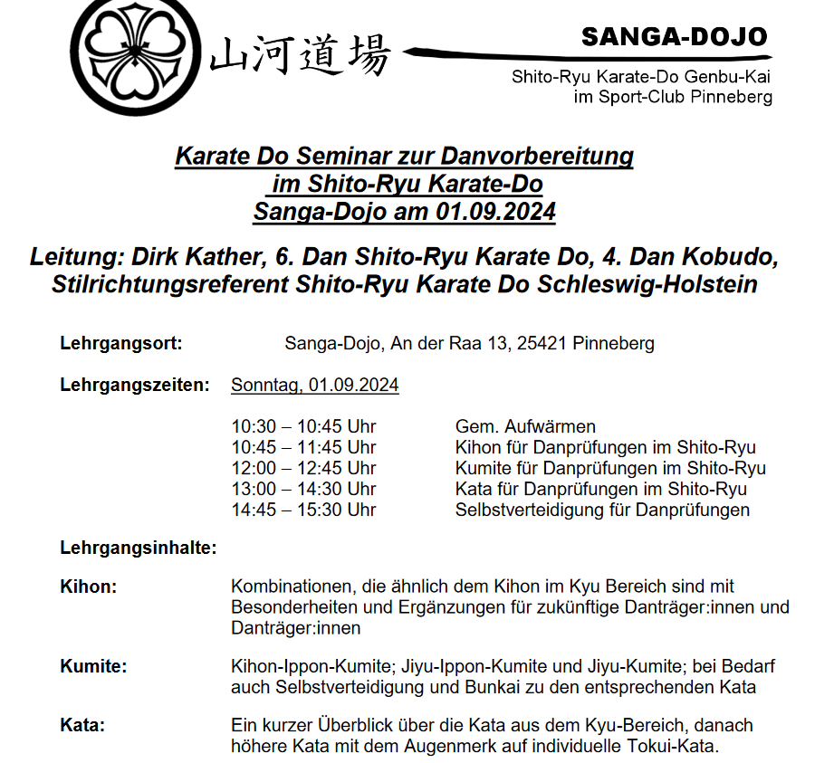 KVSH DAN- Vorbereitungslehrgang zur Ausschreibung