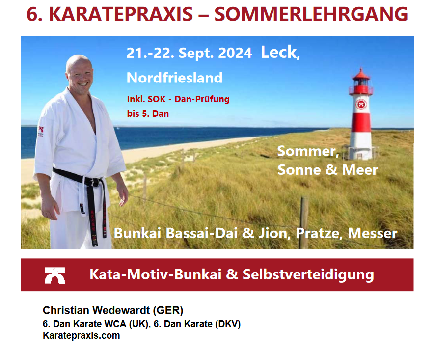 Stilrichtungsoffener Goju Ryu Karate Lehrgang mit Andreas Mulder und Björn Biel, beide 3.Dan am 14.09.2024 in Harrislee. Dynamisches Bewegen trotz...
