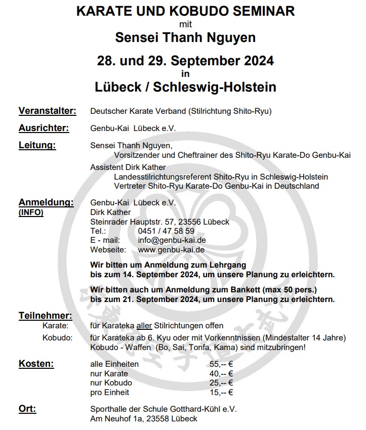 KATA-Lehrgang mit Ralf R. Ide, Tim R. Ide und Flynn R. Ide zur Ausschreibung