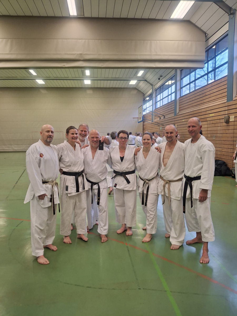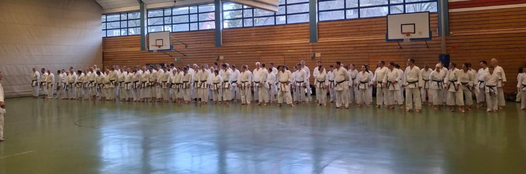 Schon am Freitagabend traf sich eine erste Gruppe im DOJO Jiyu, um sich im Rahmen eines Instructortrainings und einer Danvorbereitung ab 1. Kyu gezielt auf die bevorstehenden Prüfungen vorzubereiten. Besonders hervorzuheben ist hier, dass Wolfgang Hagge den Teilnehmenden nicht nur inhaltlich wertvolle Impulse gab, sondern im Anschluss im Rahmen eines Mondo auch individuelle Empfehlungen zur Danprüfung aussprach. Diese Rückmeldungen wurden von den Teilnehmenden angenommen – viele traten schließlich am Samstag zur Prüfung an und konnten diese mit Erfolg und Stolz bestehen.