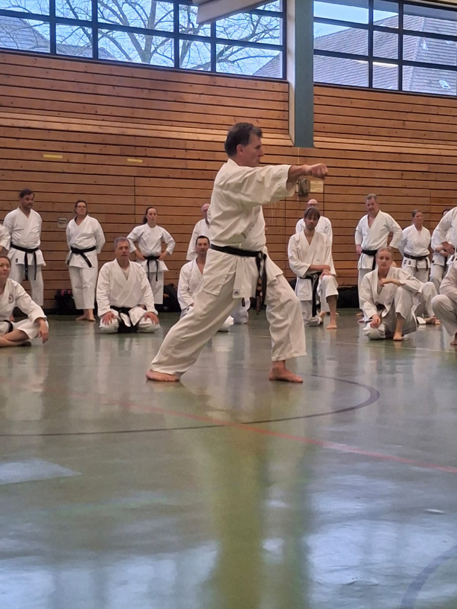 Inhaltlich wurden klassische Themenbereiche des Karate behandelt: Basisübungen, funktionelles Bunkai, sowie freie und traditionelle Partnerübungen mit Anwendungen für Wettkampf und Selbstverteidigung. Das Besondere an Wolfgang Hagges Lehrgängen ist, dass er alle Säulen des Karate – Kihon, Kata, Kumite und Selbstverteidigung – miteinander verbindet. Dabei schafft er es, einen roten Faden zu spinnen, der den Teilnehmenden Orientierung und ein tiefes Verständnis für das System Karate vermittelt – ganz gleich, ob Anfänger oder Danträger, ob jung oder alt.